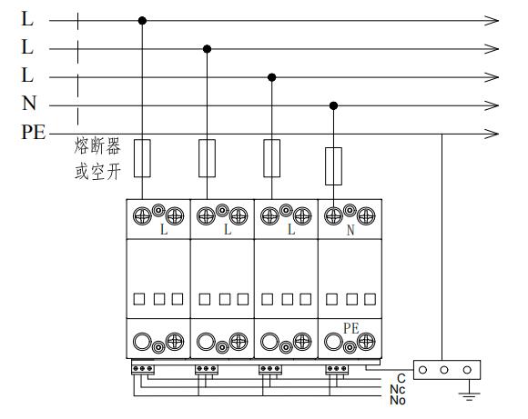 3 模块结构防雷器前端应串联合适的熔断器或空开。